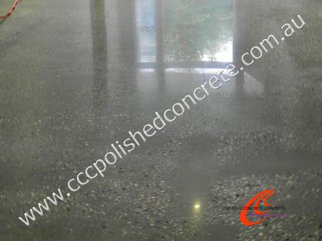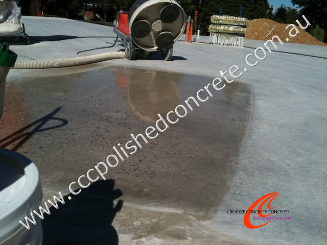 We then grind off enough to remove any humps and bumps, leaving a flat workable area, ready for sealing or commencing the polishing process. How much needs to be ground off is totally dependent on the quality of the slab. If the slab has not been well poured and finished off correctly we may have to grind back more, leaving you with both more aggregate exposure and additional cost than you might have anticipated. We shall confer with you or your nominated representative e.g. builder should this occur.