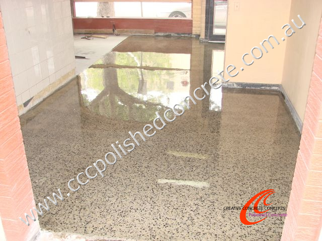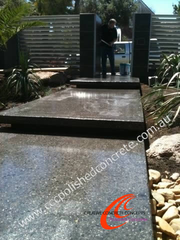 Grind and Seal is machine grinding to the desired exposure followed by a Surface Sealer in either Acrylic, Epoxy or Polyurethane to give the concrete a matt, satin or gloss look. A non-slip option is also available for outdoor concrete surfaces where slippage is a problem, for example ramps, walkways and alfresco areas.
